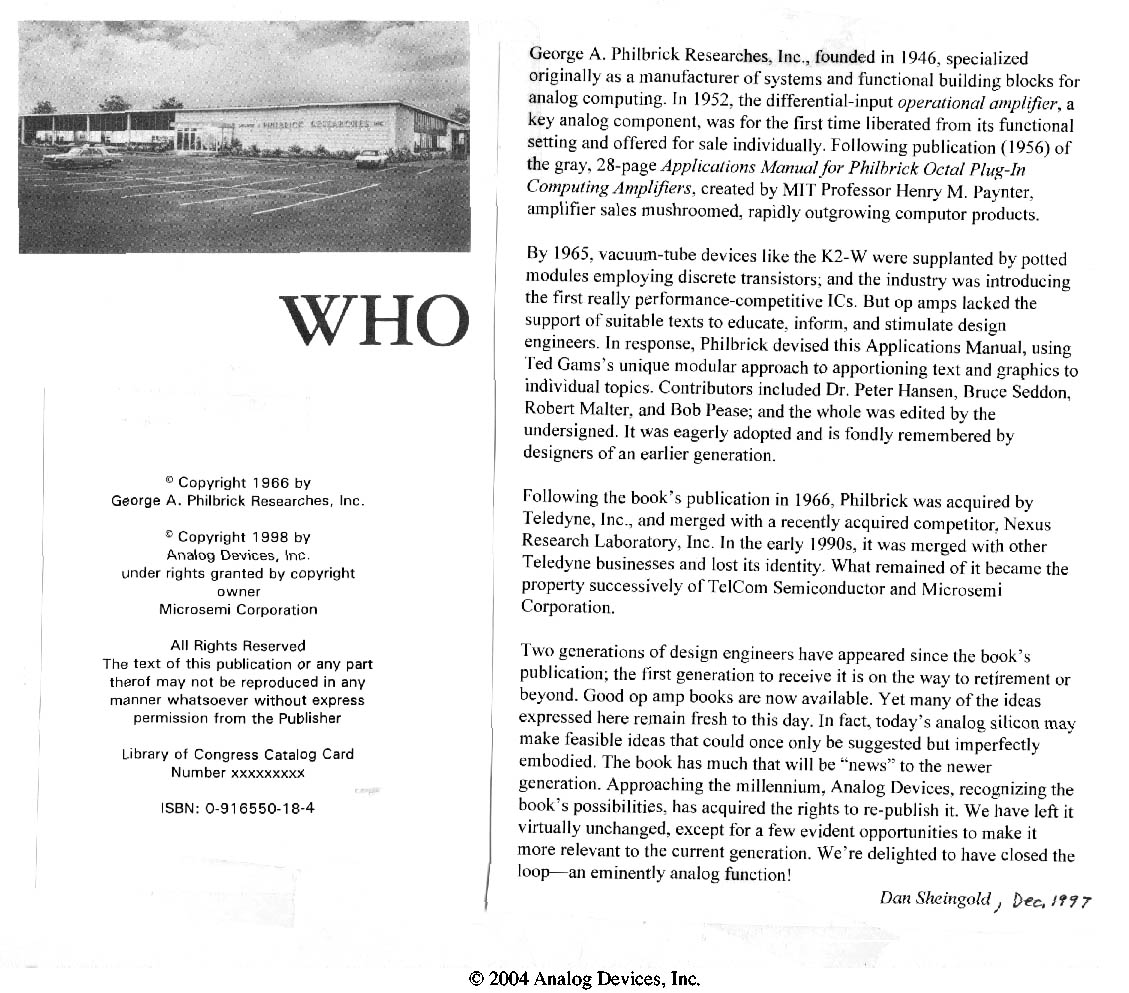 I am copying this email to Dan Sheingold who contributed the majority of the material in that book, along with Philbrick contemporaries Bob Pease, Alan Risley, and Ed Maddox.