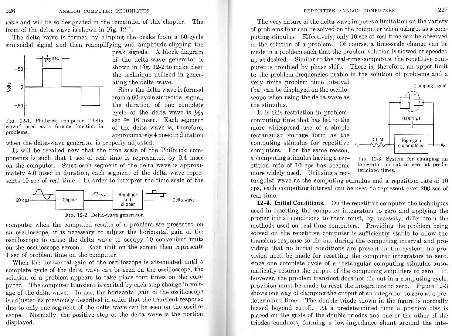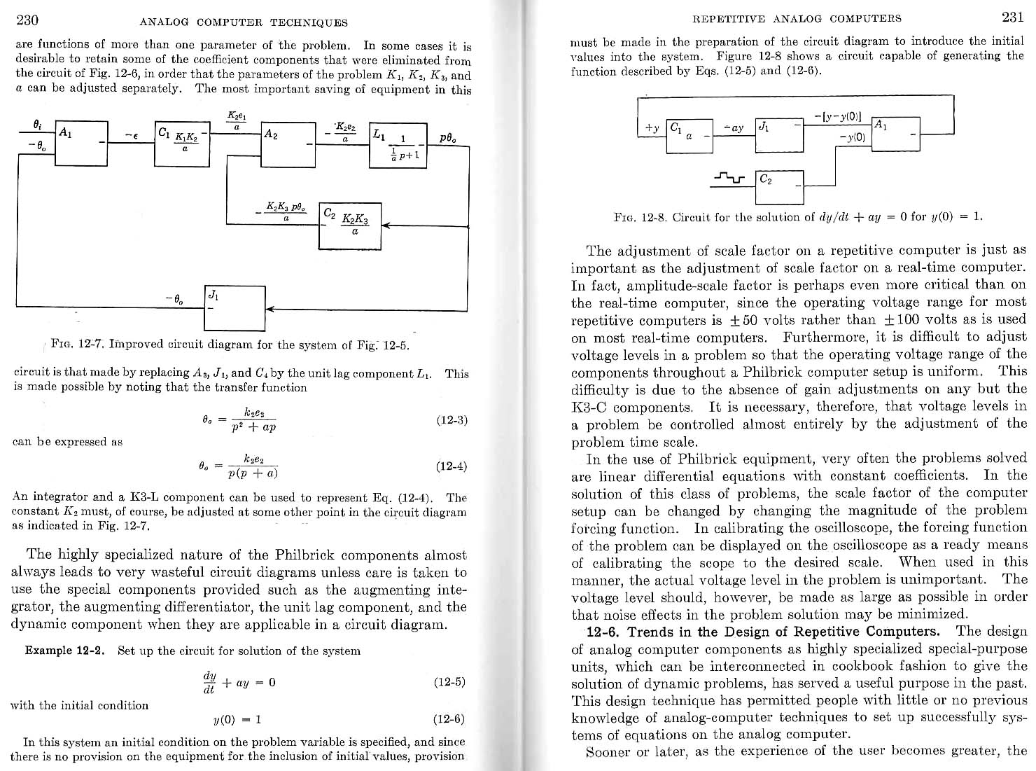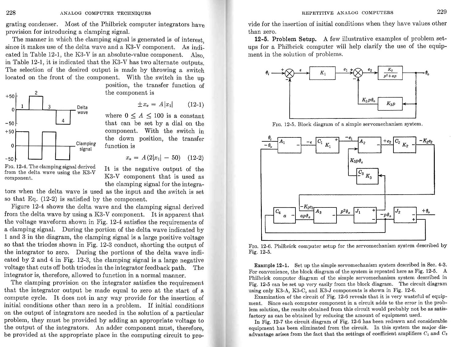 Excerpted from the book "Analog Computer Techniques " by Clarence Johnson McGraw-Hill 1956. This book is still found at used book sellers like www.amazon.com, www.abebooks.com and www.alibris.com.