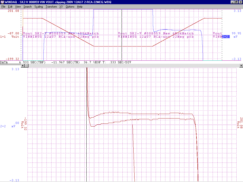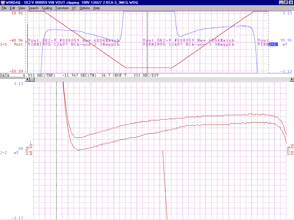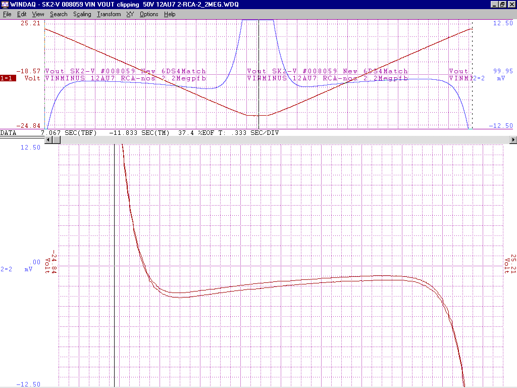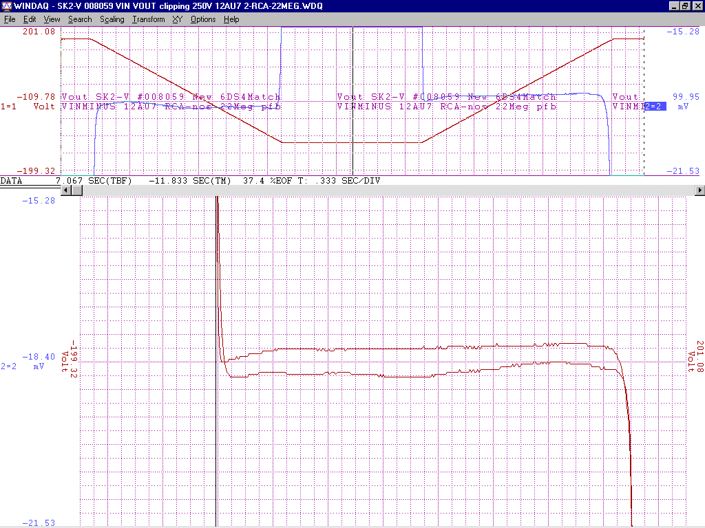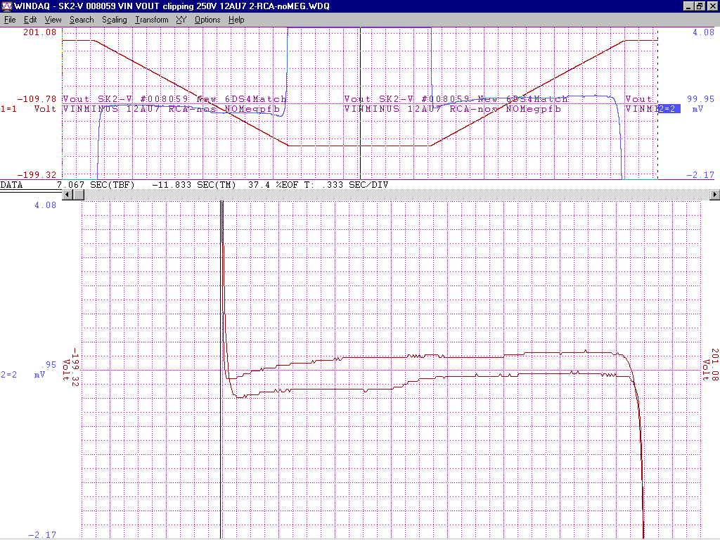 +/-15V gain of about 100 from -2V to +1V deltaV=32mVp-p with an additional 200k of pfb between the output 12AU7 cathodes
