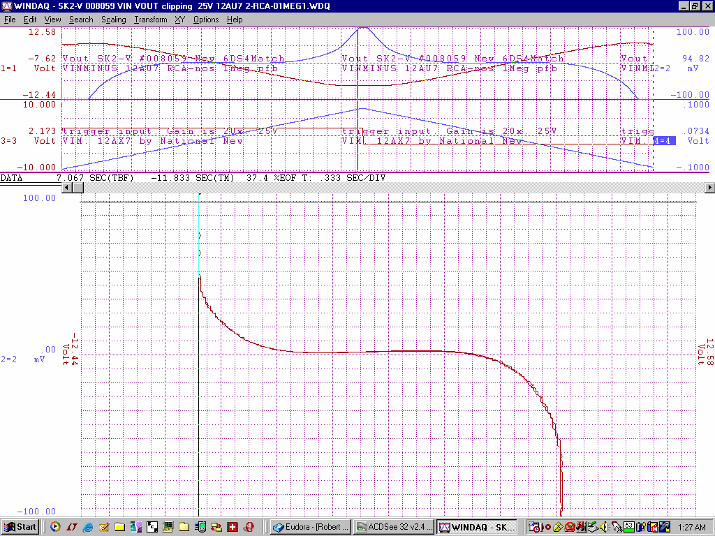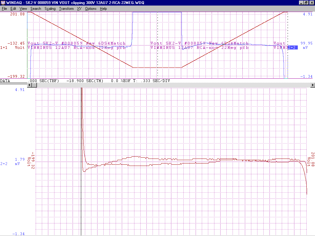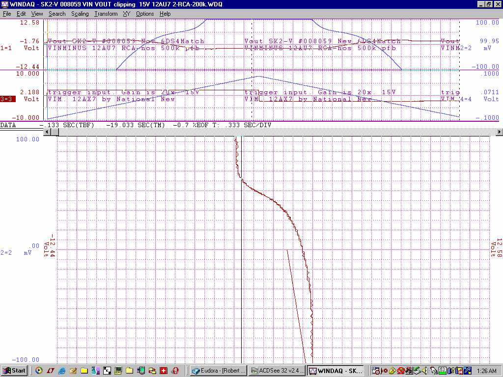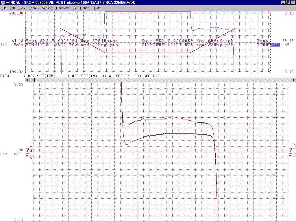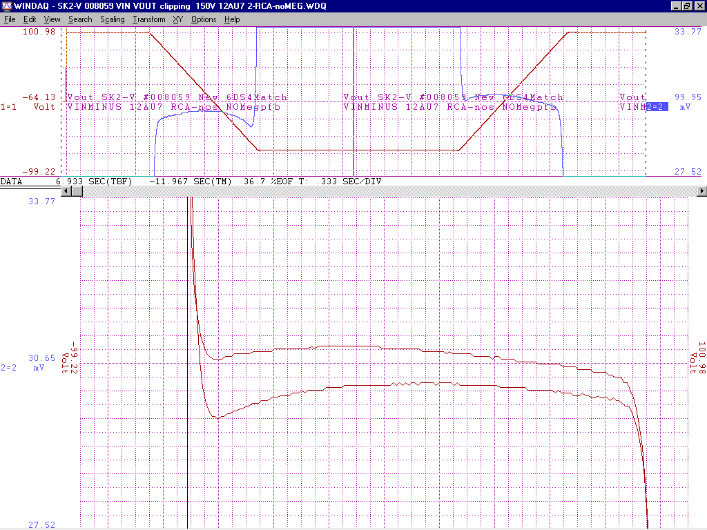 +/-15V gain of about 100 from -2V to +1V deltaV=32mVp-p with an additional 200k of pfb between the output 12AU7 cathodes