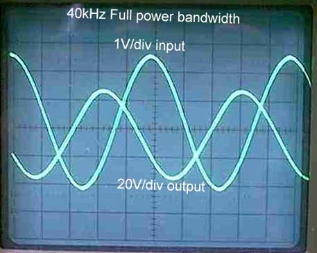 The Full power bandwidth of 40kHz coinsides with the small signal bandwidth of 40kHz with a loop gain of 21.
