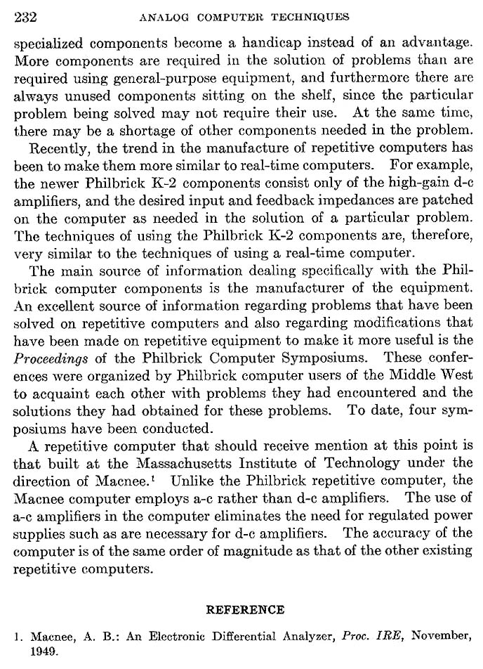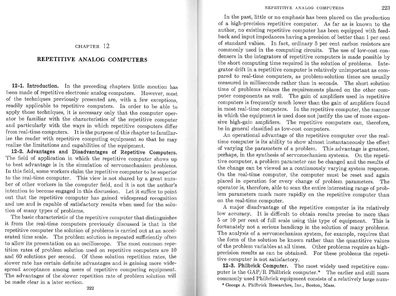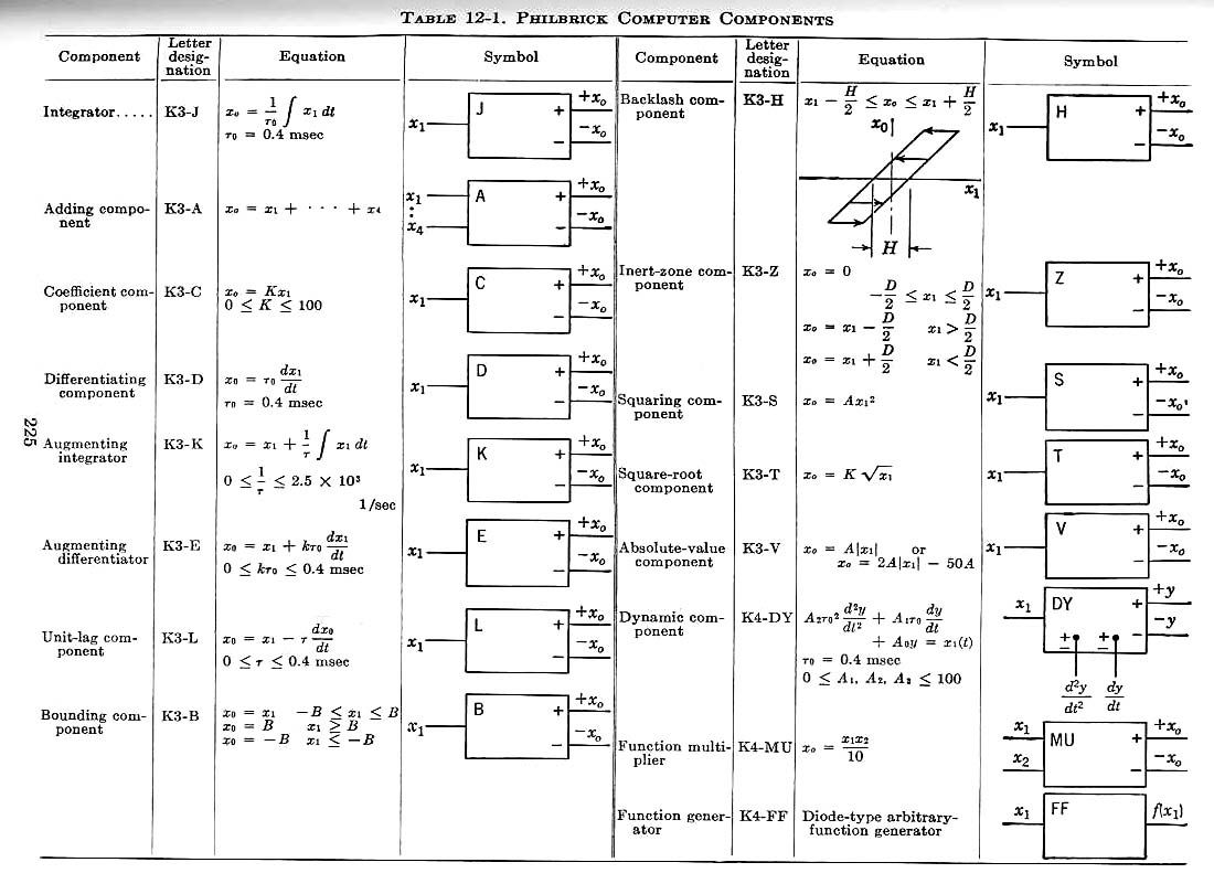 Excerpted from the book "Analog Computer Techniques " by Clarence Johnson McGraw-Hill 1956. This book is still found at used book sellers like www.amazon.com, www.abebooks.com and www.alibris.com.