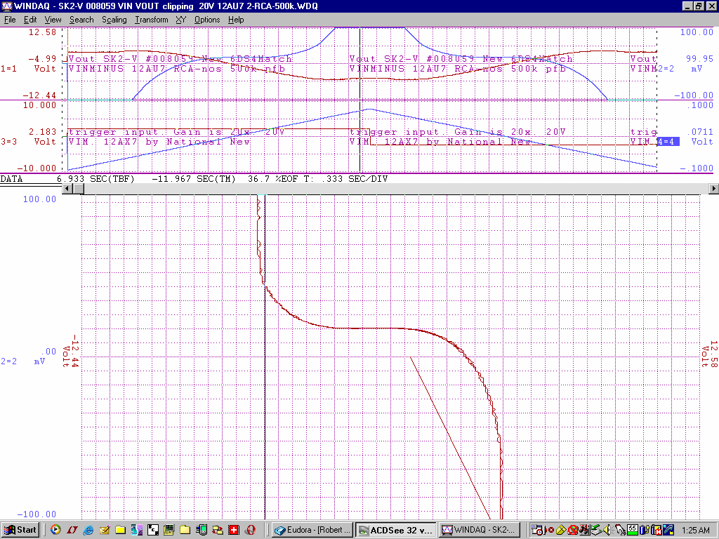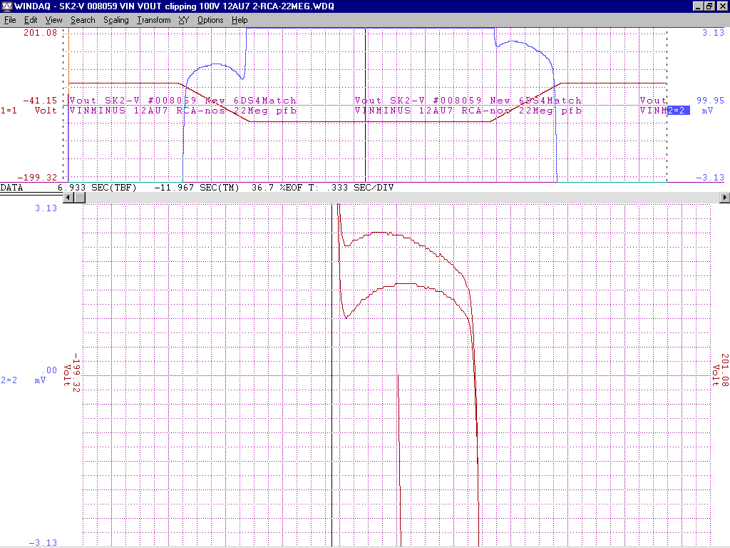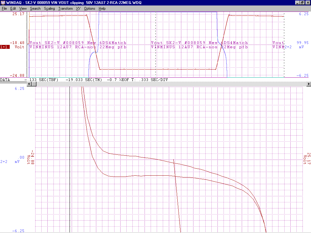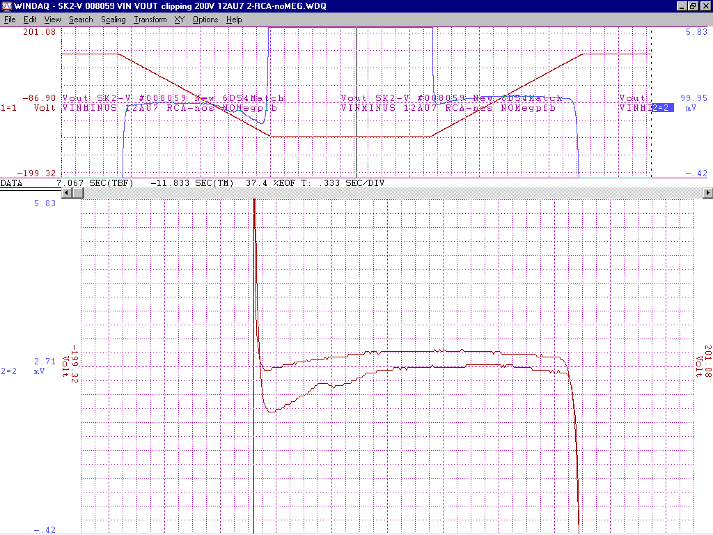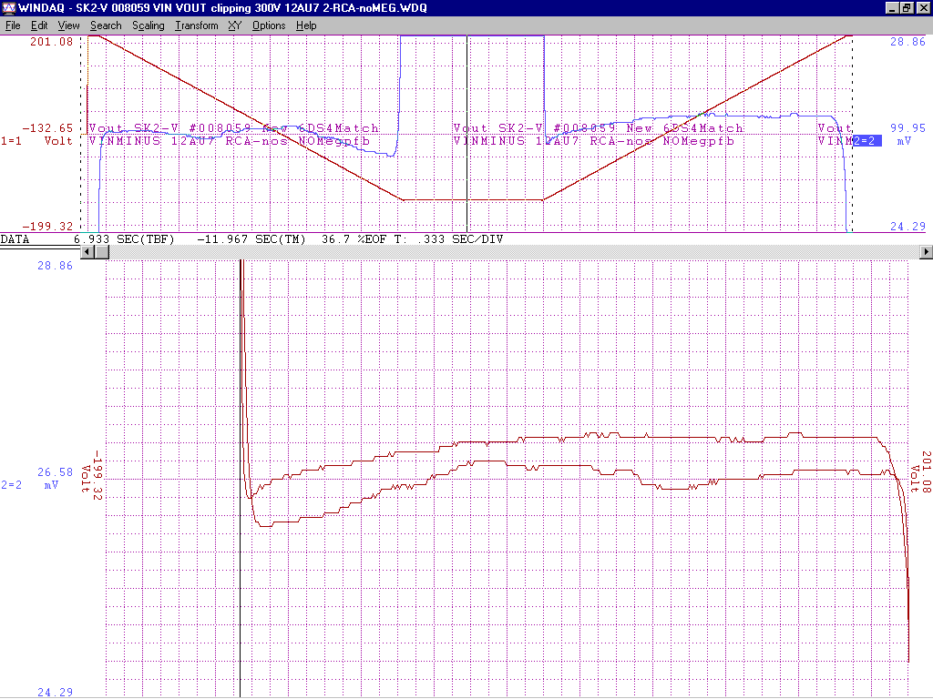 +/-15V gain of about 100 from -2V to +1V deltaV=32mVp-p with an additional 200k of pfb between the output 12AU7 cathodes